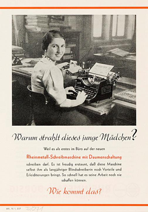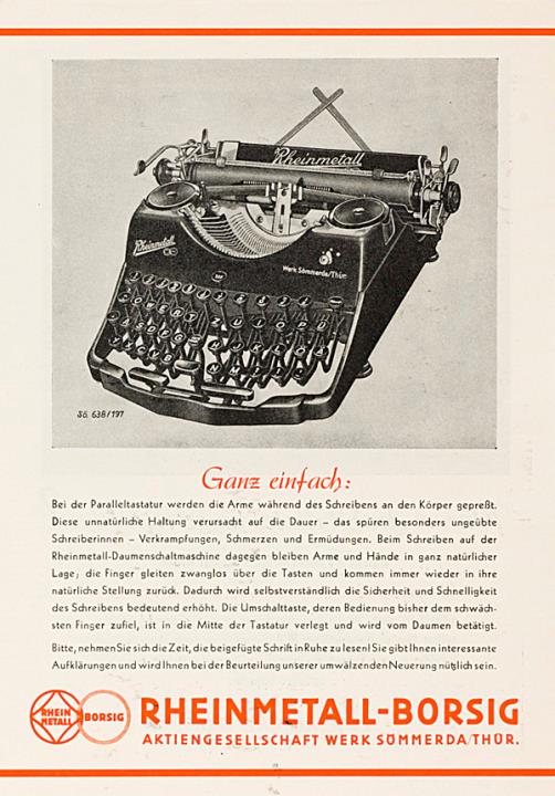 Prospekt für Schreibmaschine Rheinmetall mit Daumenschaltung Nr. 641, N 1, 237