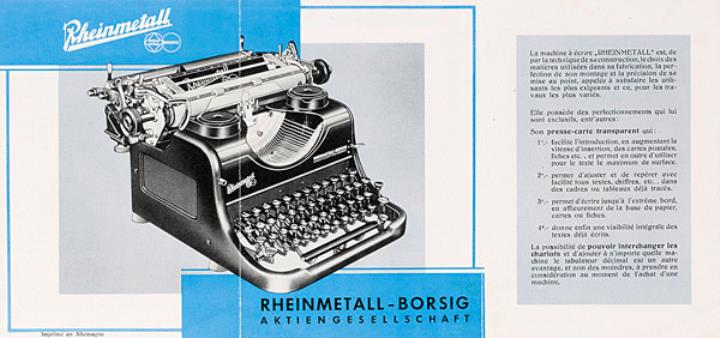 Faltprospekt für Schreibmaschine Rheinmetall Standard Nr. 769/N 2/739 franz.