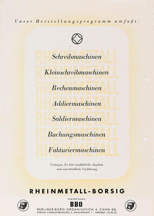 Prospekt für Schreibmaschine Rheinmetall KST mit Setztabulator