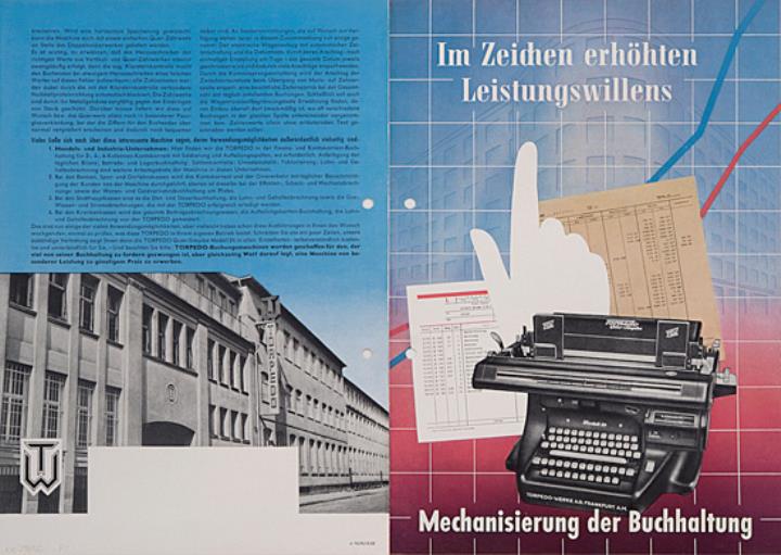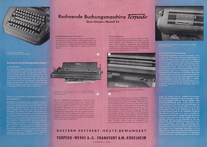 Faltprospekt für Schreib- und Buchungsmaschine Torpedo Vertikal-Simplex 24 Nr. d 10/50.12.52
