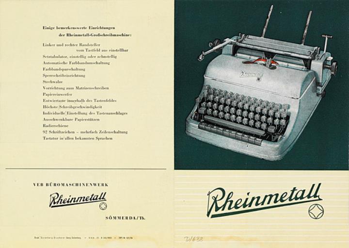 Faltprospekt für Büroschreibmaschine Rheinmetall Nr. 122/55