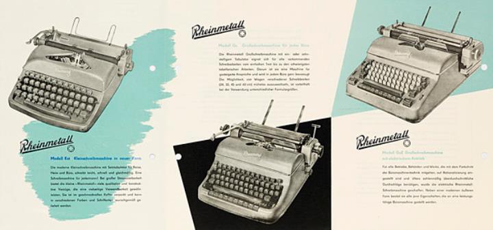 Faltprospekt für Schreibmaschine Rheinmetall Nr. Ag 10/0052/55