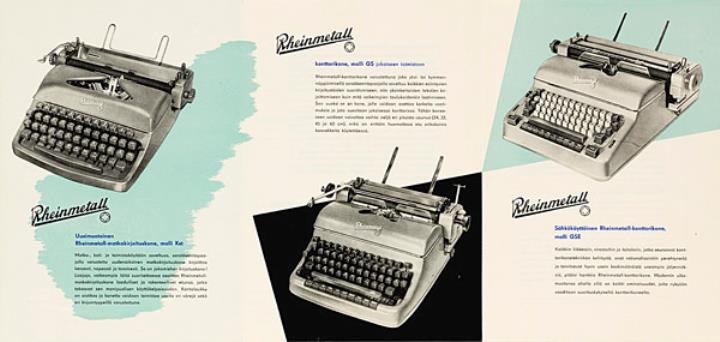 Faltprospekt für Schreibmaschine Rheinmetall Nr. Ag 10/0052 55 Finnisch