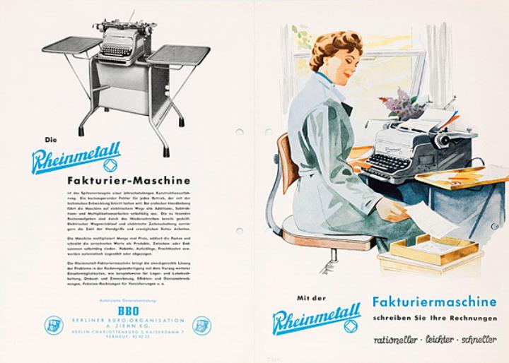 Faltprospekt für Schreib- und Fakturiermaschine Rheinmetall