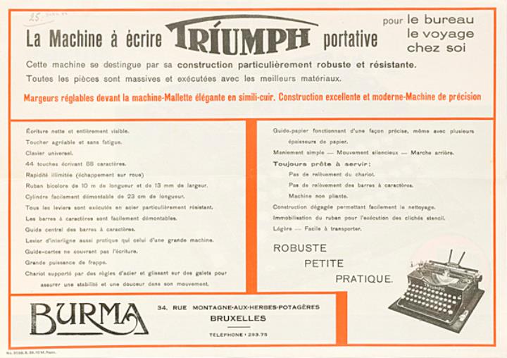 Next to literature on the history of technology, of the typewriter and the office, the Archive holds patent letters, textbooks and instruction manuals as well as historical postcards, letters, photographs and various kinds of advertising (leaflets and brochures, advertising stamps, newspaper ads, posters and signs, promotional gifts).