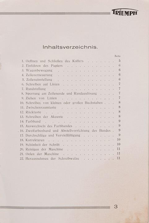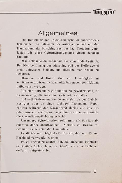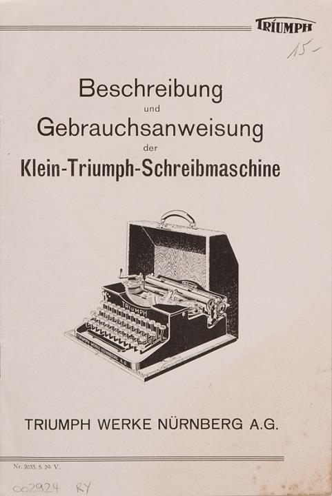 Klein Triumph Schreibmaschine Beschreibung und Gebrauchsanweisung