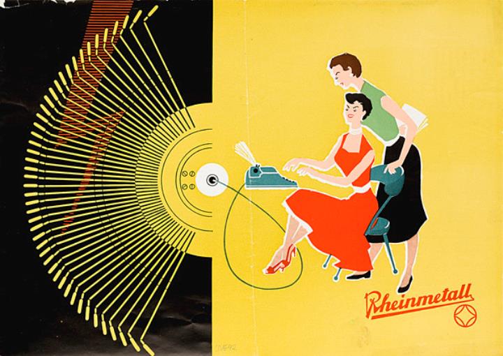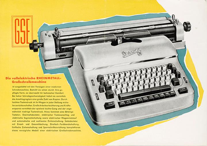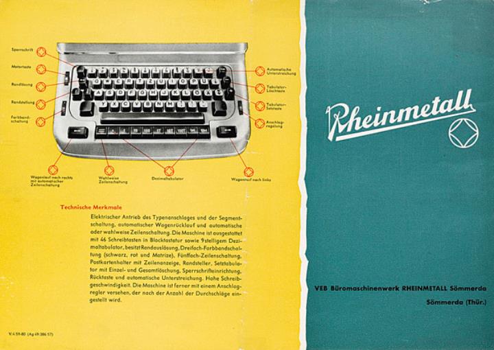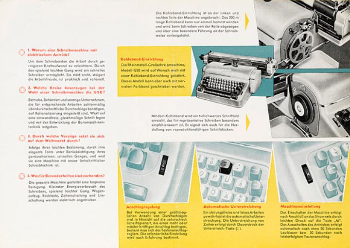 Faltprospekt für elektrische Büroschreibmaschine Rheinmetall GSE Nr. V/4/59-80 (Ag 49/386/57)