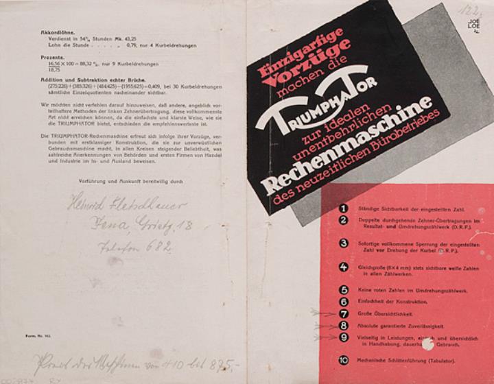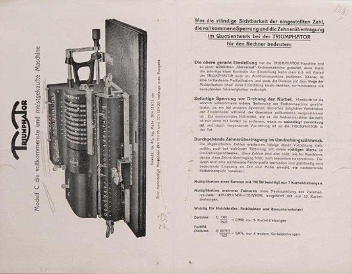 Faltprospekt für Rechenmaschine Triumphator Nr. 162