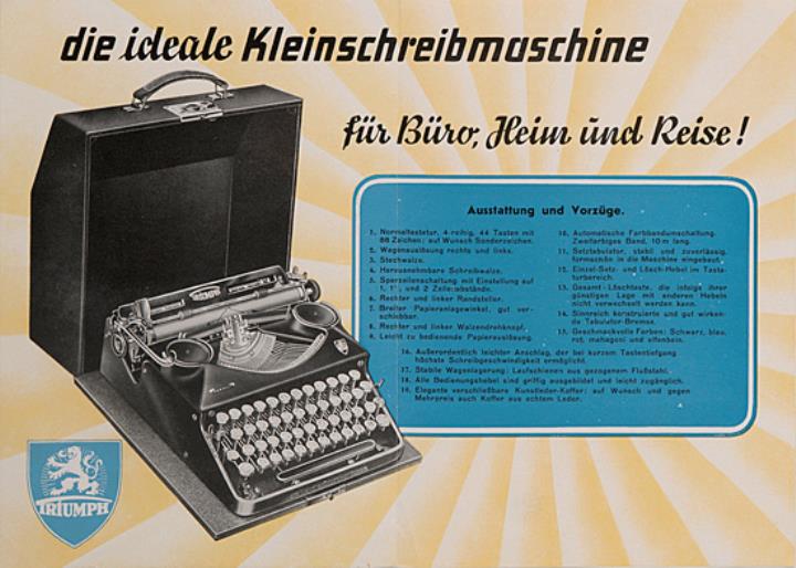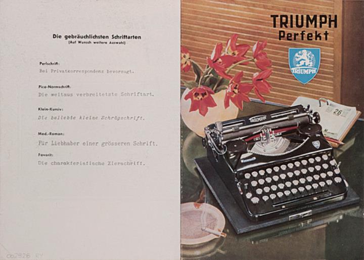 Faltprospekt für Schreibmaschinen Triumph Perfekt
