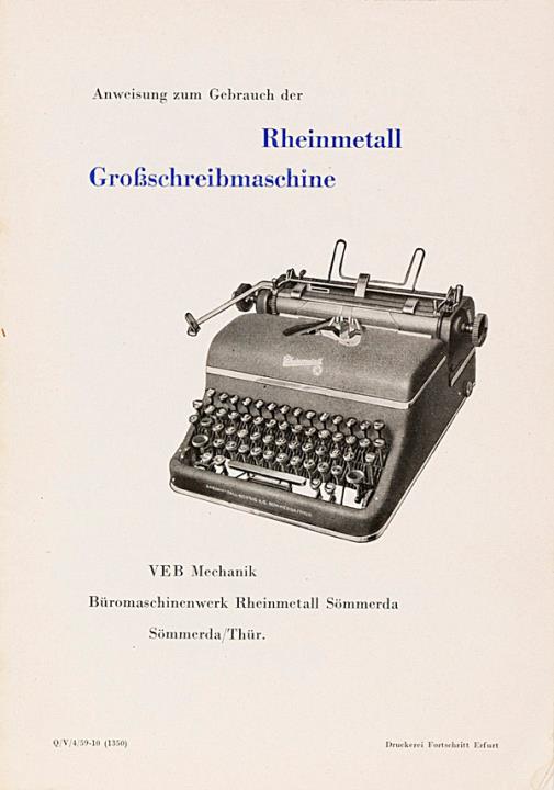 Bedienungsanleitung für Büroschreibmaschine Rheinmetall Nr. Q/V/4/59-10 (1350)