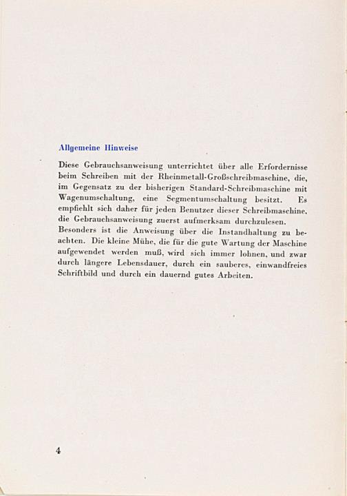 Rheinmetall Groß-Schreibmaschine Gebrauchsanweisung