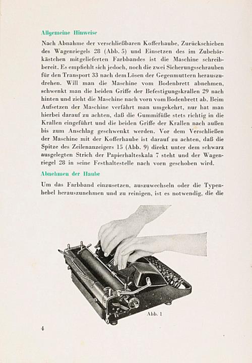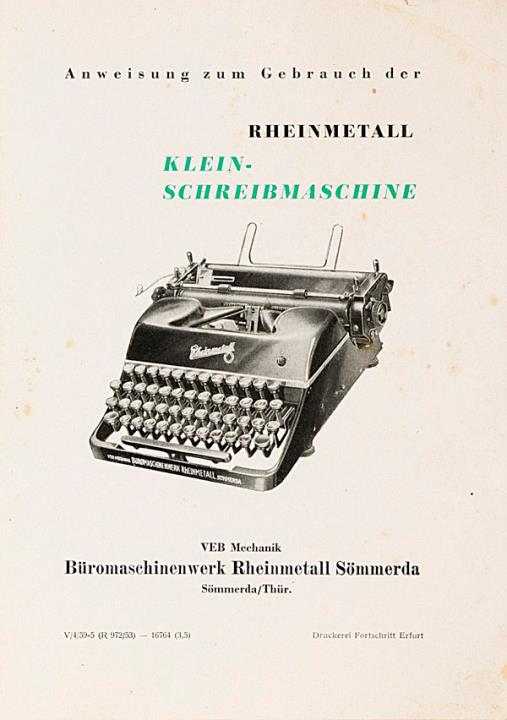 Bedienungsanleitung für Kleinschreibmaschine Rheinmetall Nr. V/4/59-5 (R 972/53)
