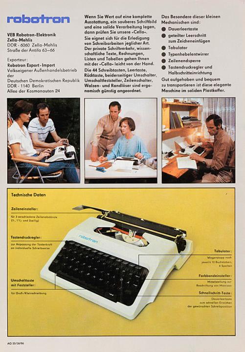 Prospekt für Schreibmaschine Robotron Cella Nr. AG 25/36/86