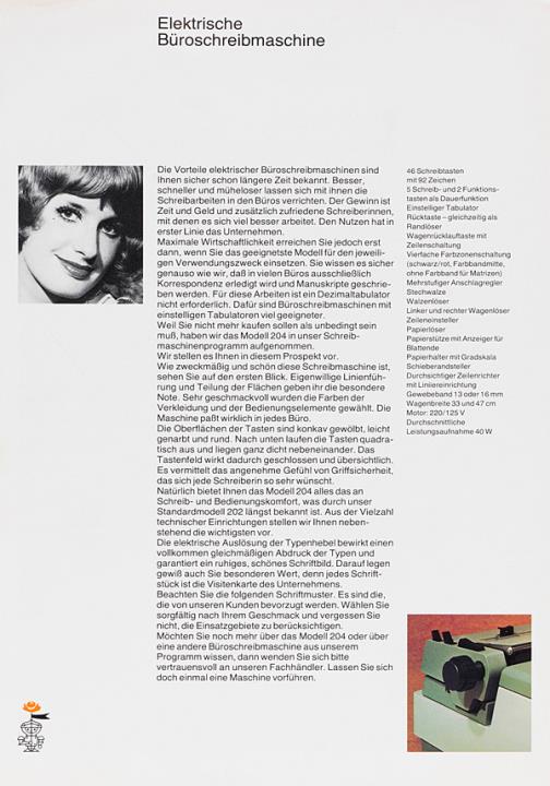 Faltprospekt für Schreibmaschine Robotron 204 Nr. Ag. 25/61/79