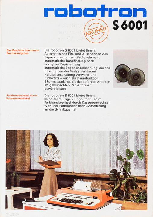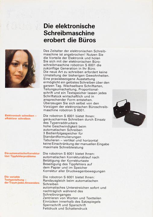 Faltprospekt für Schreibmaschine Robotron S 6001 Nr. Ag. 25/10/79