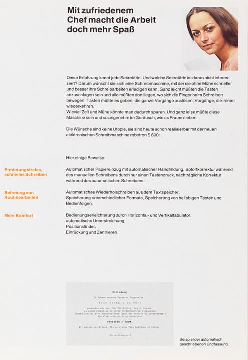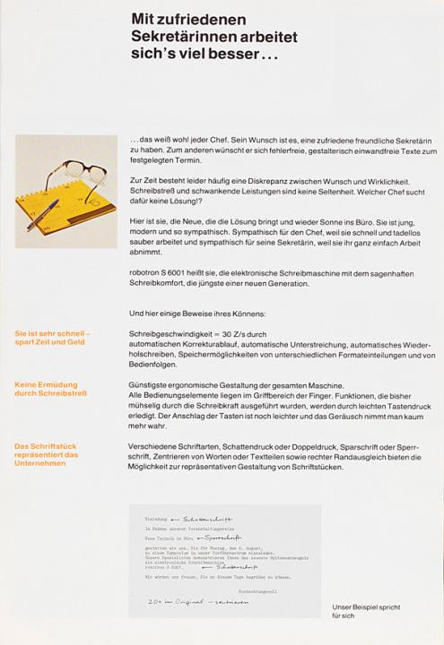 Faltprospekt für Schreibmaschine Robotron S 6001 Zeit-Gewinn durch höchsten Komfort für Sie und Ihre Sekretärin Nr. Ag. 25/4/80
