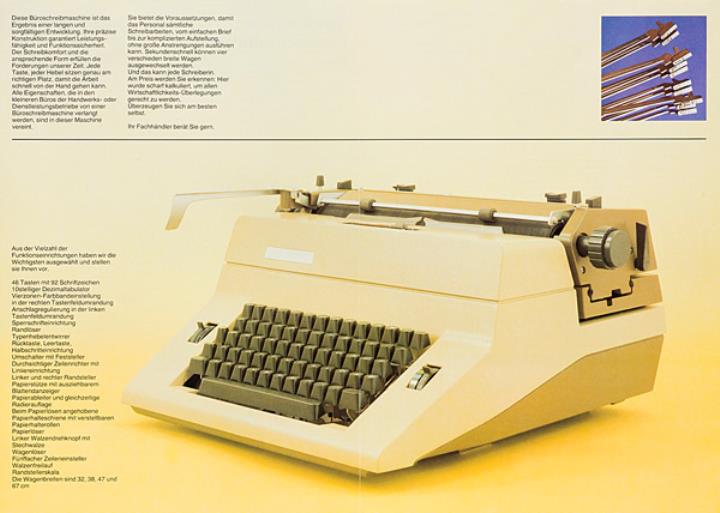 Next to literature on the history of technology, of the typewriter and the office, the Archive holds patent letters, textbooks and instruction manuals as well as historical postcards, letters, photographs and various kinds of advertising (leaflets and brochures, advertising stamps, newspaper ads, posters and signs, promotional gifts).