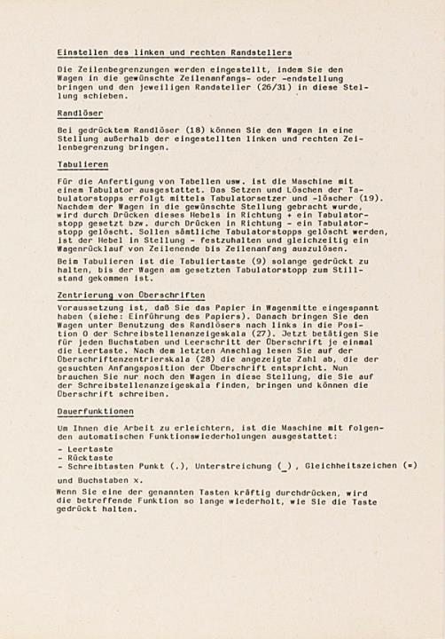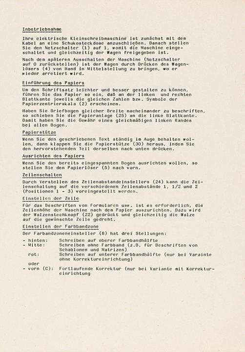 Bedienungsanleitung für Schreibmaschine Robotron Erika electric Nr. Ag 706/H/135/83