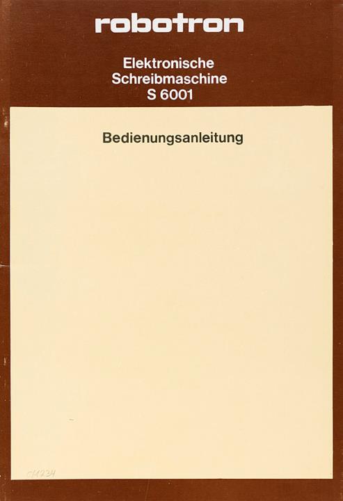 robotron Elektronische Schreibmaschine S 6001 Bedienungsanleitung