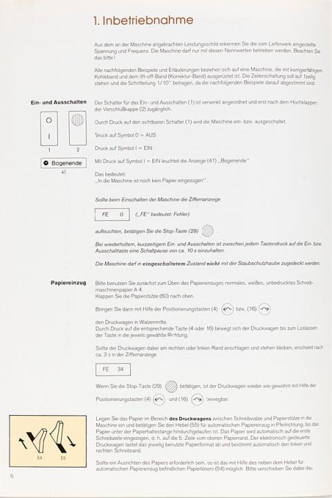 Bedienungsanleitung für Schreibmaschine Robotron S 6001 Nr. Rs 363/81 W-V-2-1