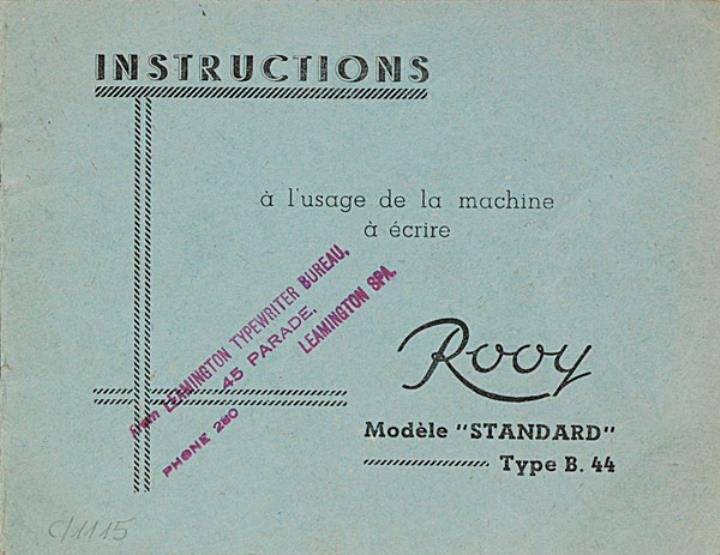 Instructions à l'usage de la machine à écrire Rooy modèle Standard Type B.44