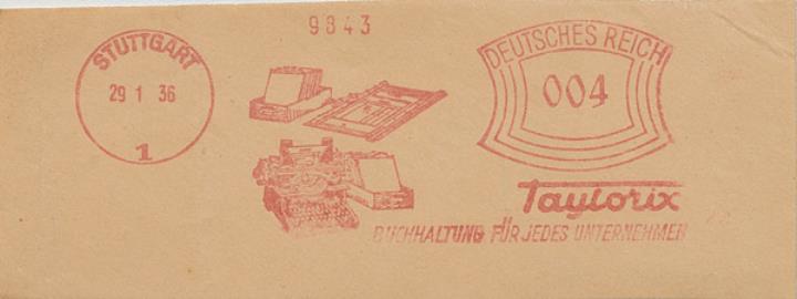 Papierstreifen mit Absenderfreistempel; Nr. 9843 Stempel: Stuttgart/29.01.1936, Werbung, Wert Deutsches Reich 4 RPf.