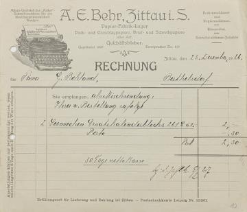 Rechnung der Schreibmaschinenhandlung A. E. Behr, Zittau i. S. adressiert an Firma G. Bohland; datiert 23.10.1926 Handschrift