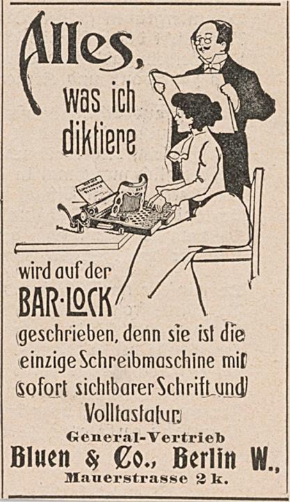 Werbeanzeige für Schreibmaschine Bar-Lock monochrom