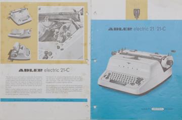 Faltprospekt in englischer Sprache für Schreibmaschine Adler electric 21/21-C
