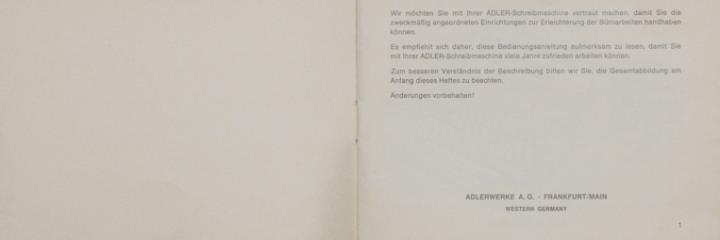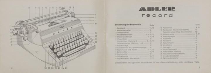 Bedienungsanleitung für Schreibmaschine Adler record Nr. A 644/170/17/1.5