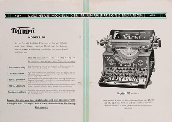 Next to literature on the history of technology, of the typewriter and the office, the Archive holds patent letters, textbooks and instruction manuals as well as historical postcards, letters, photographs and various kinds of advertising (leaflets and brochures, advertising stamps, newspaper ads, posters and signs, promotional gifts).
