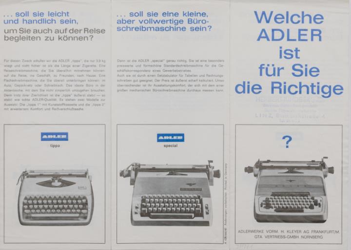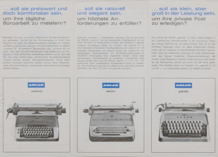 Faltprospekt für Schreibmaschine Adler Nr. A 628/666/40