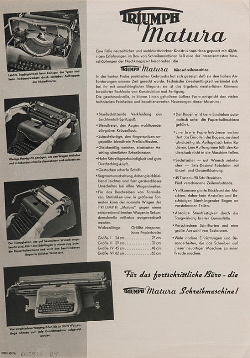 Prospekt für Schreibmaschine Triumph Matura Nr. 1028/451/b