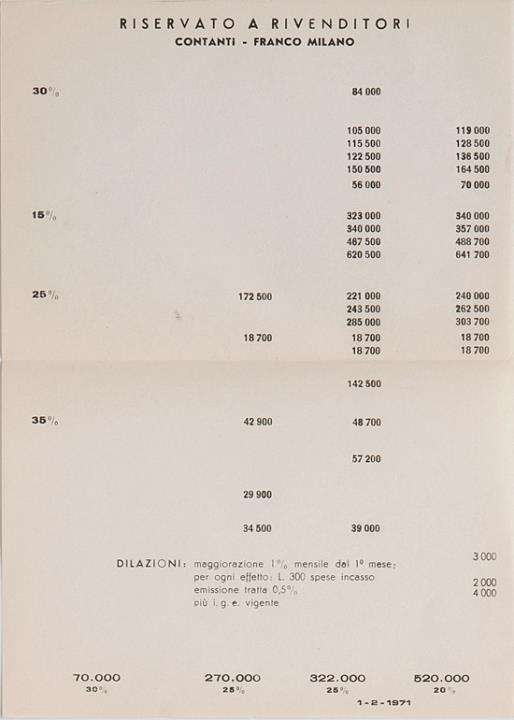 Preisliste und Ratentabelle für Schreibmaschinen Triumph Stand 01.02.1971