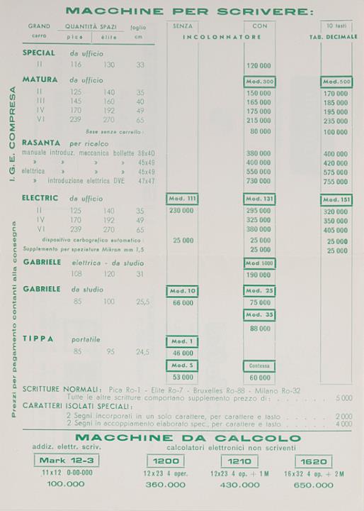 Schreibmaschine, Preise, Preisliste