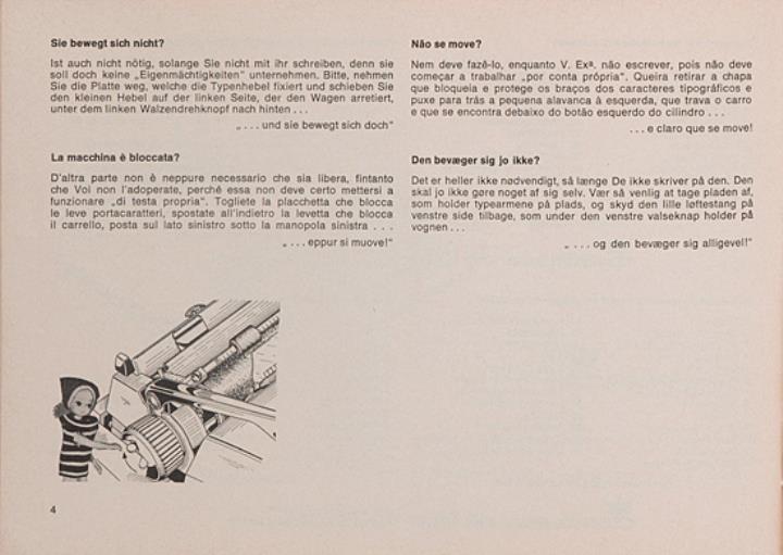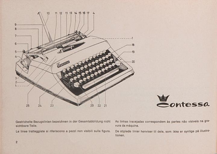 Bedienungsanleitung viersprachig für Schreibmaschine Adler contessa Nr. A 804/571/17/10 dtsch., ital., port., dän.