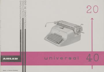 Bedienungsanleitung in vier Sprachen für Schreibmaschine Adler universal 20 und universal 40 Nr. A 343/165/17 dtsch., engl., franz., span.