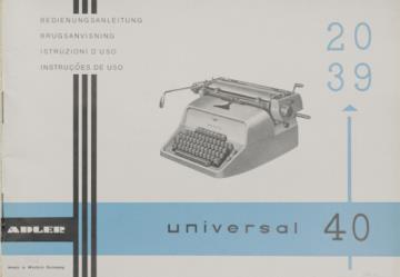 Bedienungsanleitung in vier Sprachen für Schreibmaschine Adler universal 20, univeral 39 und universal 40 Nr. A 574/965/17 deutsch, ital., port., dän.
