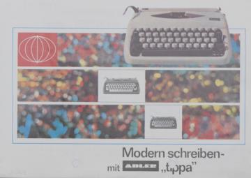 Faltprospekt für Schreibmaschine Adler Tippa Nr. A779/769/6 Preise und Datum handschriftlich vermerkt
