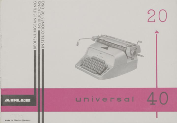 Bedienungsanleitung in vier Sprachen für Schreibmaschine Adler universal 20 und universal 40 Nr. A 343/462/17 dtsch., engl., franz., span.