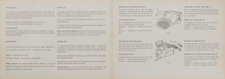 Bedienungsanleitung in vier Sprachen für Schreibmaschine Adler universal 20 und universal 40 Nr. A 343/165/17 dtsch., engl., franz., span.