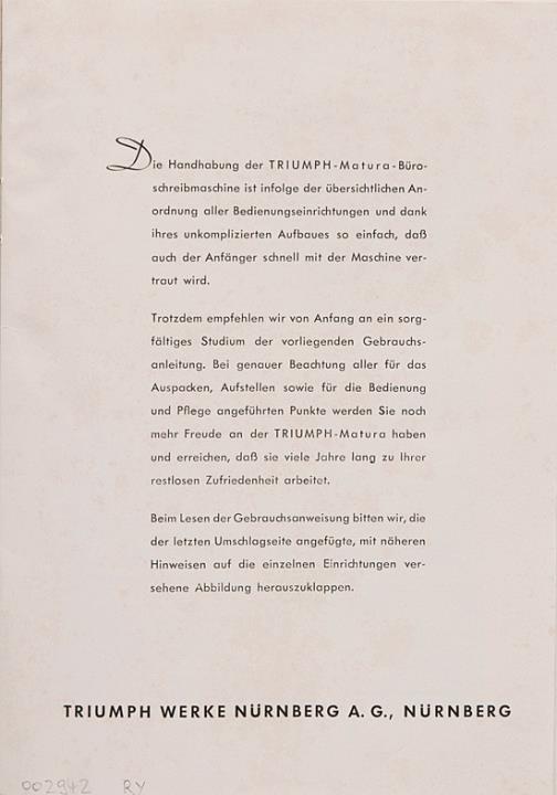 Bedienungsanleitung für Schreibmaschine Triumph Matura Nr. 1020/1252/s