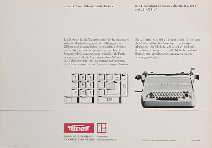 Faltprospekt für Schreibmaschine Triumph electric 151c Schriften, die nicht nur Sie lesen können, sondern auch Ihr Computer Nr. 2168/369/40