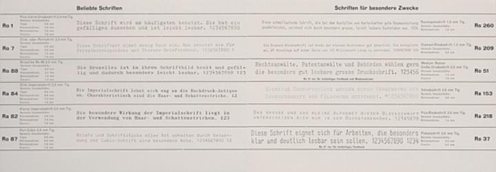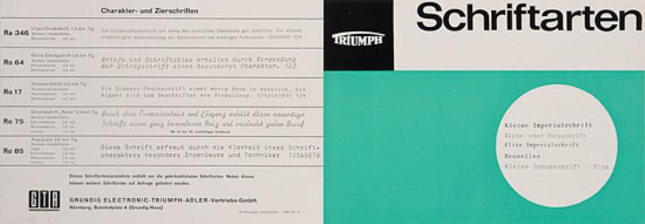 Schriftartenverzeichnis für Schreibmaschine Triumph Nr. 1288/761/6
