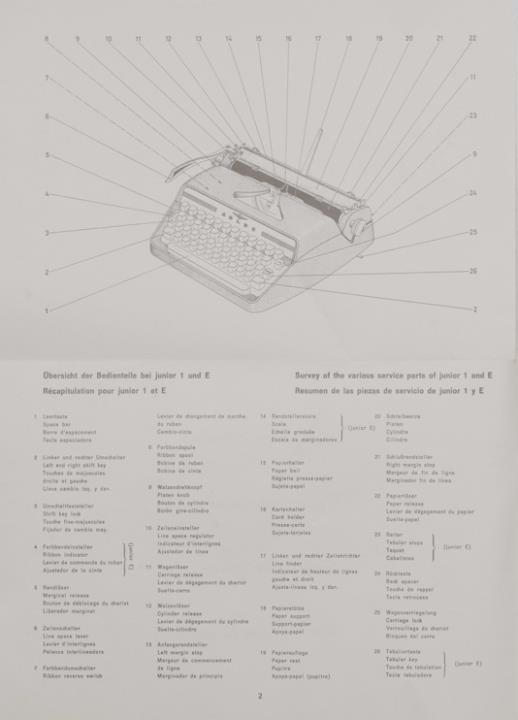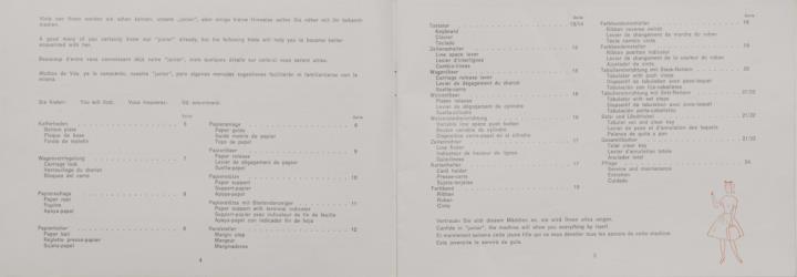 Bedienungsanleitung in vier Sprachen für Schreibmaschine Adler junior 1, 2, 3 und E Nr. A 121/2/1163/6 d, e, fr, sp