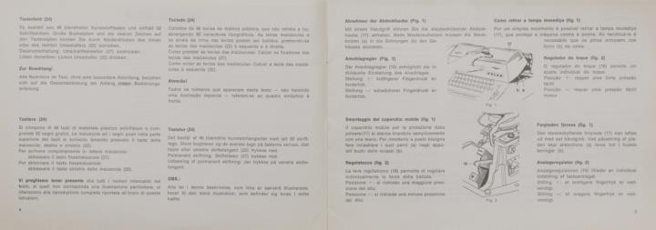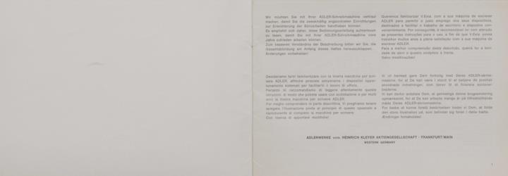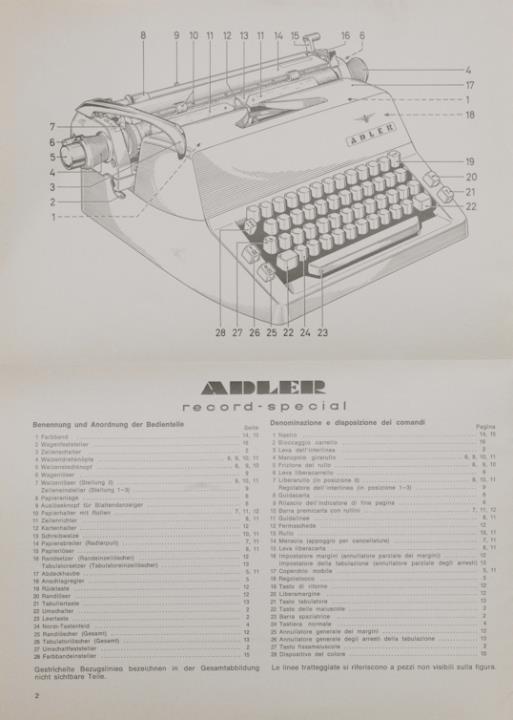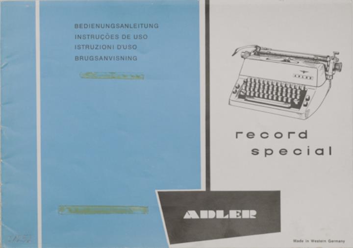 Bedienungsanleitung in vier Sprachen für Schreibmaschine Adler record special Nr. A 491/465/17 deutsch, ital., port., dän.