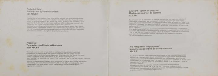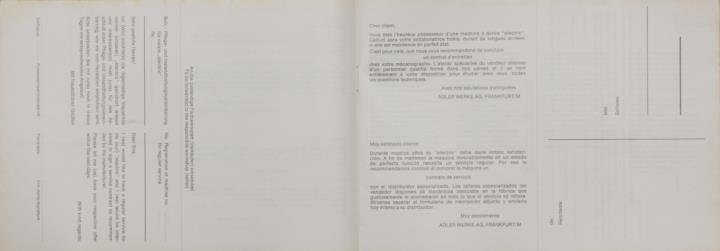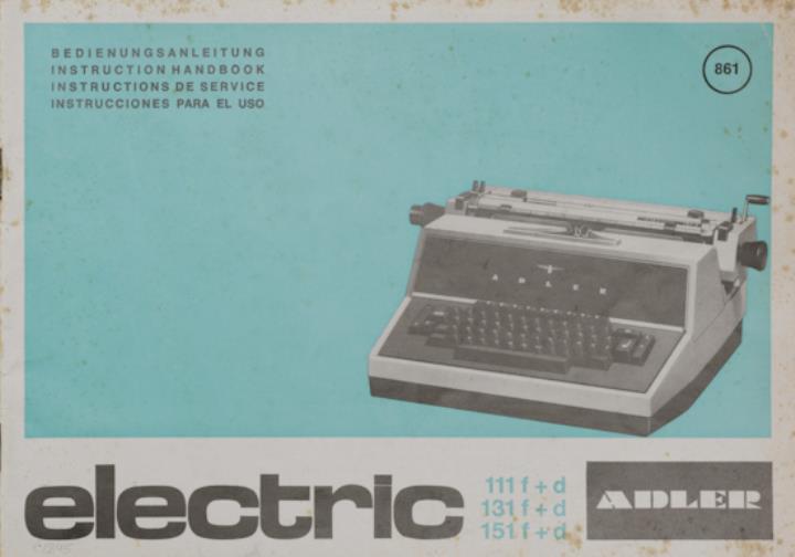Bedienungsanleitung in vier Sprachen für Schreibmaschine Adler electric 111 f/d, 131 f/d und 151 f/d Nr. 132/7/373/ d, e, fr, span.