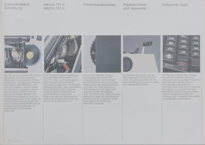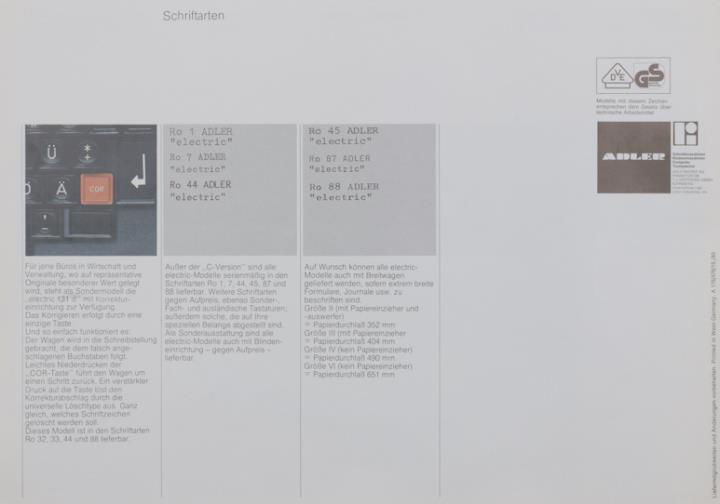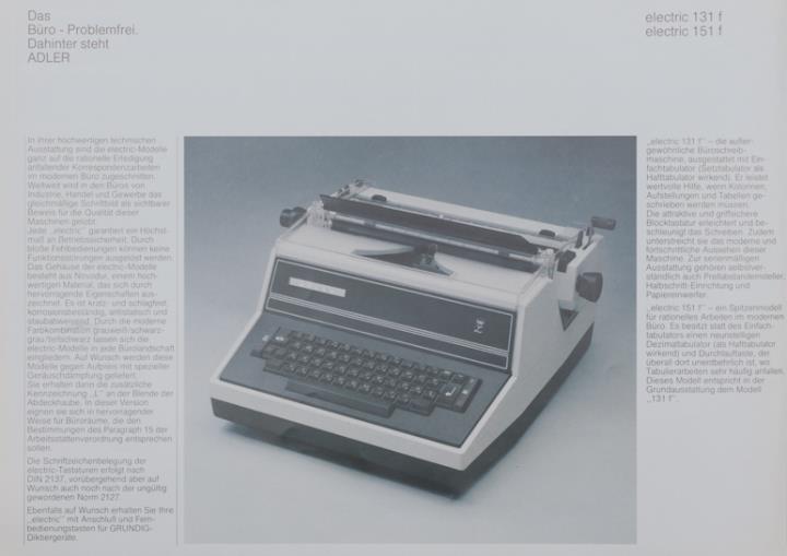 Faltprospekt für Schreibmaschine Adler electric 131d und 151d Nr. A 178/478/15./40