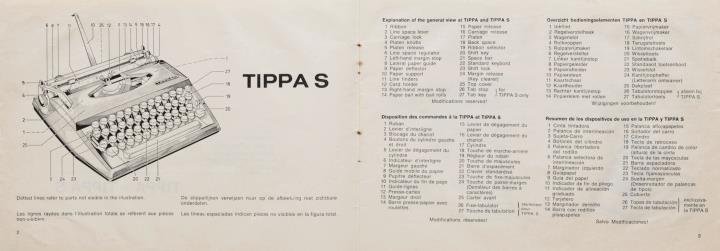 Bedienungsanleitung viersprachig für Schreibmaschinen Adler Tippa und Tippa S Nr. 121/10/0477/N e, fr, holl, sp.