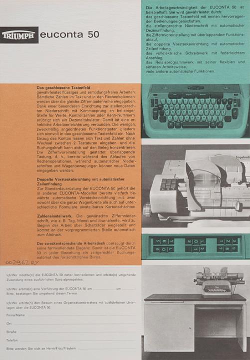 Prospekt für Schreib- und Buchungsmaschine Triumph Euconta 50